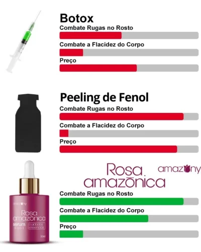 Ao contrário de cremes comuns, o Rosa Amazônica combina alta tecnologia e ingredientes potentes em uma fórmula que trata profundamente os sinais de envelhecimento. Com ácido hialurônico, peptídeos, vitamina C e extratos botânicos antioxidantes, esse sérum foi desenvolvido para combater rugas, manchas e desidratação de forma rápida e eficaz.